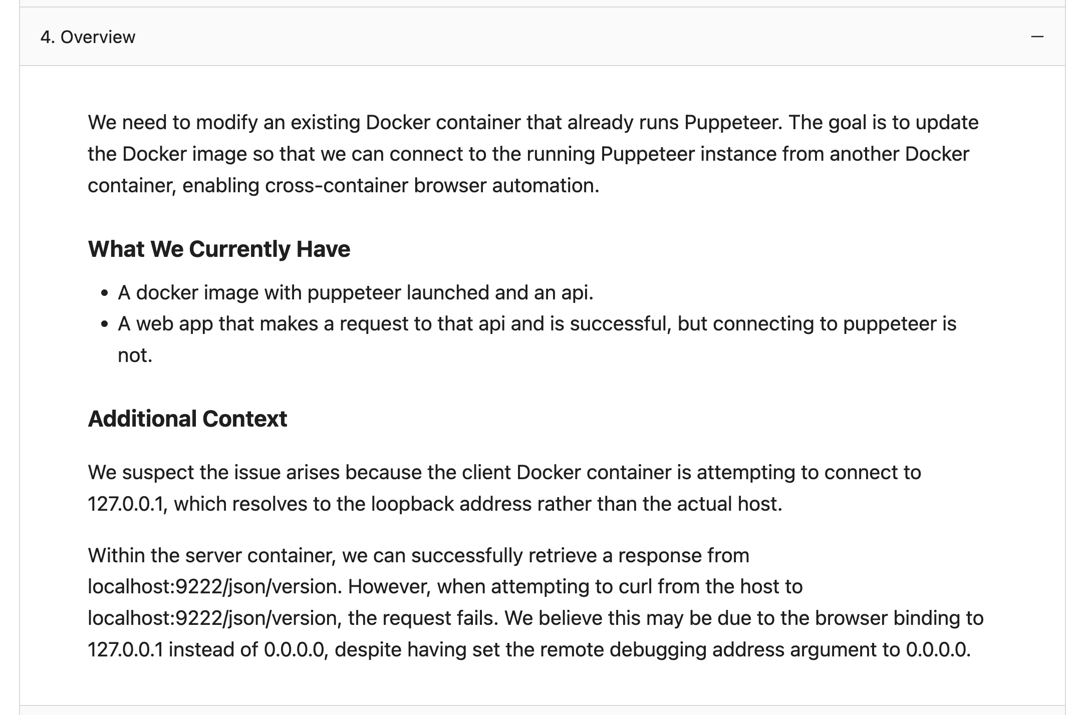- We used our own product, Scout AI, to solve a complex Puppeteer-in-Docker configuration issue without any engineer involvement